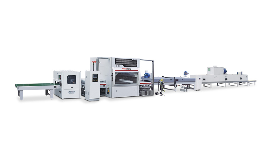 适用于门框线、画框、舍槽企口板、门窗配件、家具配件踢脚线、地板、塑钢型材和木塑线条等条型工件的三个表面,针对UV和水性油漆等各种油漆进行连续自动喷漆。