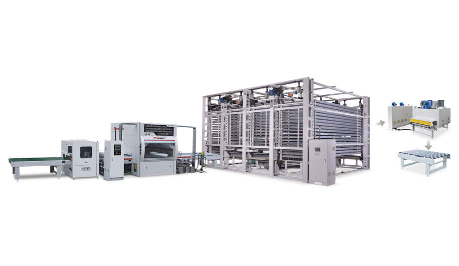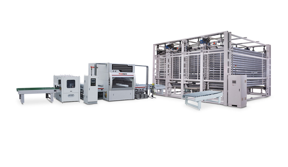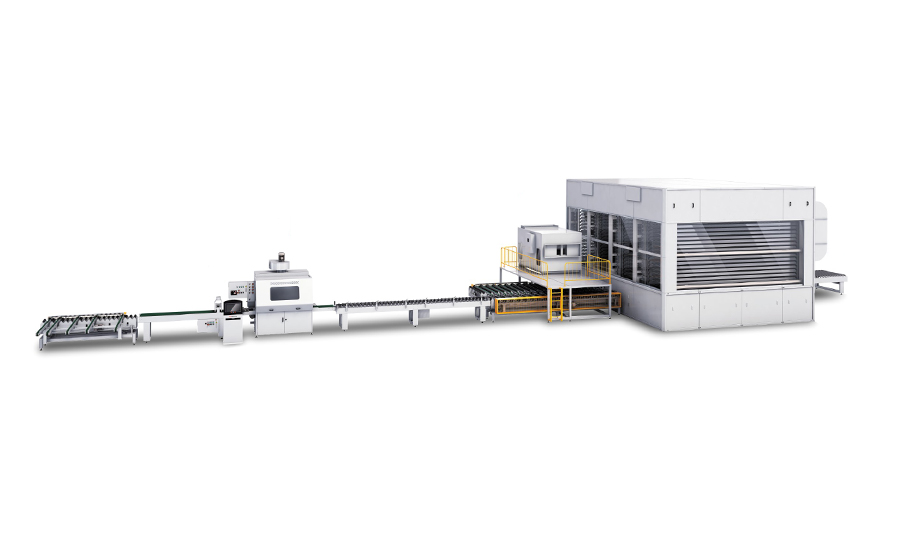 占地少、产效高的门扇喷漆生产线,实现每扇门45s生产节拍,利用立体储存式干燥房,配合恒温恒湿干燥系统,进行水性漆的长达2个小时的流平和待干,实现水份从底层缓慢迁移到漆膜表面,达到更顺滑的漆面效果,同时兼顾油漆的干燥效果,亦适用于PU油漆的干燥。