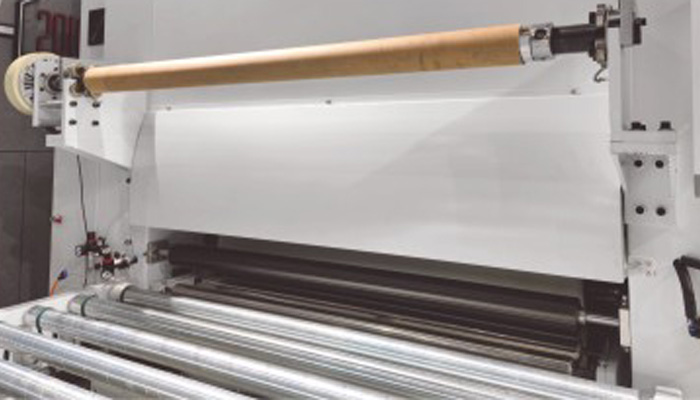 利用循环膜,将辊涂油漆后的板面进行膜压,实现高光、哑光、肤感、3D浮雕、镭射等特殊表面效果。