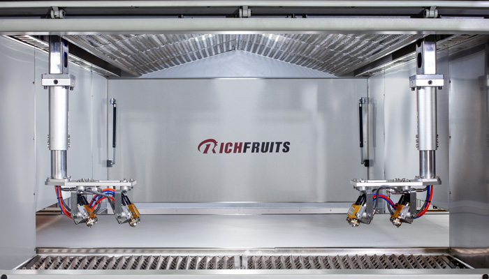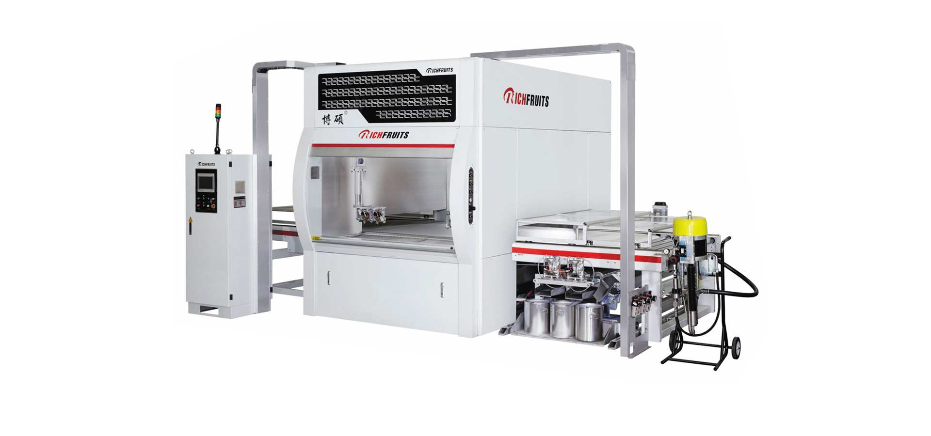 适用于实木家具、实木复合门、美式橱柜、套房家具、卫浴柜、展示柜、工艺品、装饰板、硅酸钙板、玻镁板等板式工件的平面和四个侧边,针对UV、PU、AC、NC和水性漆等,进行高质量效果连续自动喷漆,实现节能、环保和减少人工,提高产品质量和生产效率。