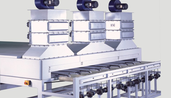 适用于门框线、画框。舌槽企口板门窗配件、家具配件、踢脚线、地板、塑钢型材和木塑线条等长条型且规格统一的工件的三个表面,针对PU、NC、UV和水性漆自动喷漆后的油漆流平和干燥。