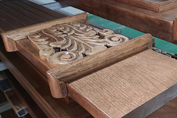 针对立体、异形、带凹槽的工件进行连续喷涂,四个侧边及一个上表面同时上色,漆面均匀平整,色泽饱满,在批量生产过程中始终保持稳定的出品。