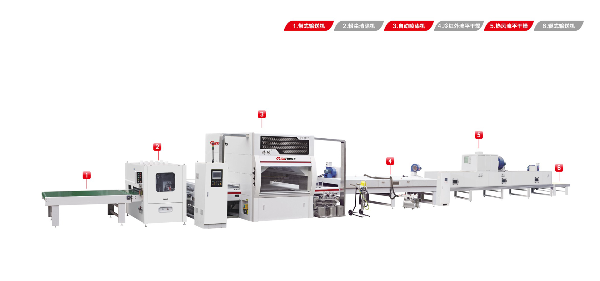 适用于板式家具、实木门、橱柜门、工艺品、装饰板、硅酸钙板、玻镁板、水泥纤维板的板式加工件的平面和四个侧边进行高质量、大批量连续喷漆。