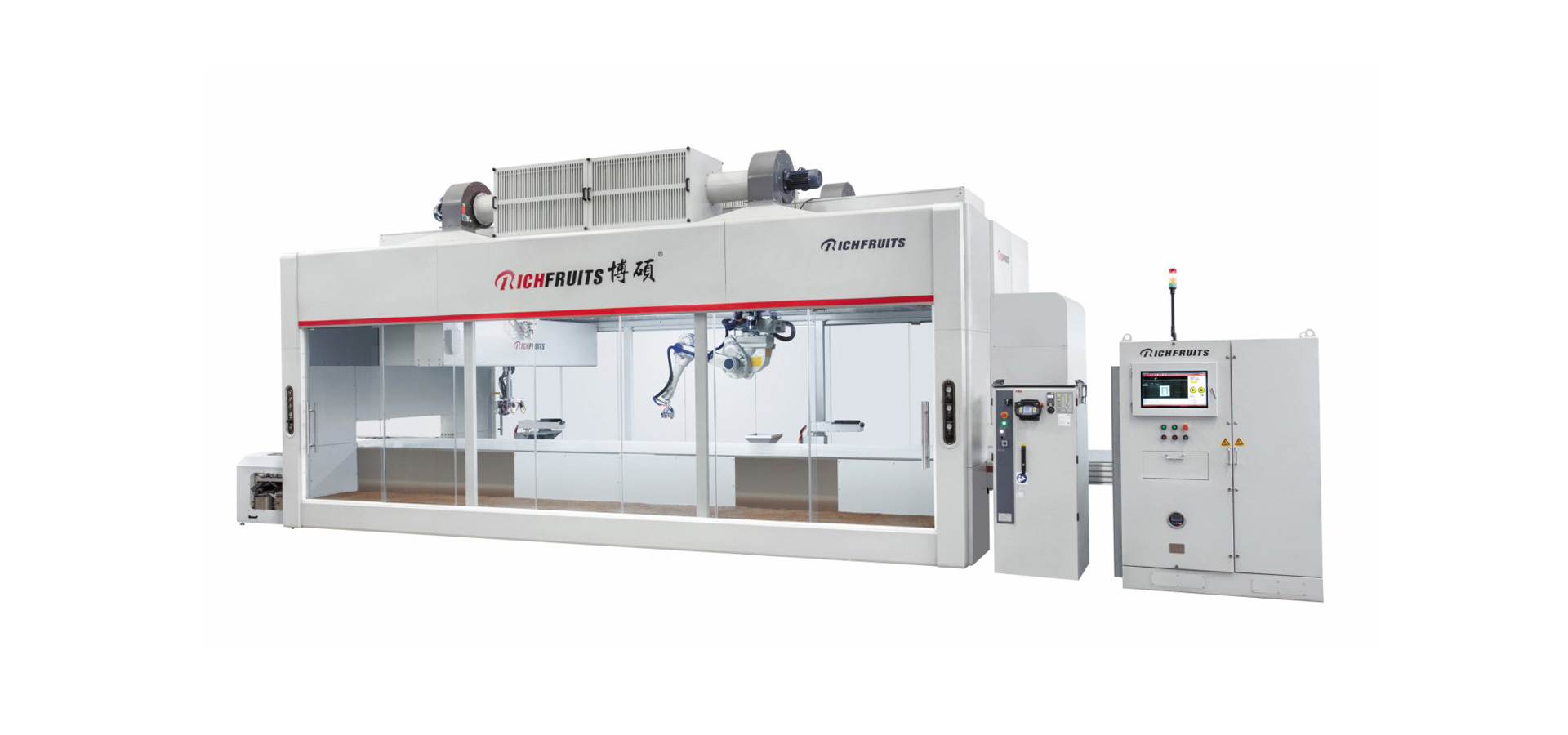 B7机器人自动喷漆机适合厚度在300mm以内的任意工件。针对办公台面、办公台侧板、套房家具床头架、弧形柜板、展示柜台面等较为复杂的工件。无需人工干预,智能驱动机器人喷漆的逻辑和喷涂的模式。面漆、修色兼容;通用喷胶和喷漆;精确的油漆扇幅,雾化,流量。