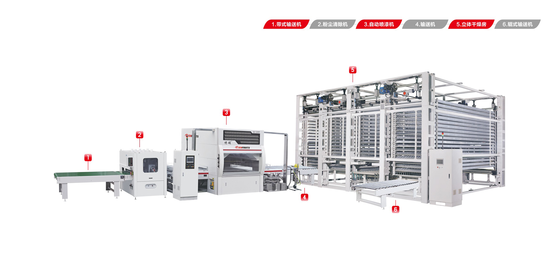 适用于板式家具、实木门、橱柜门、工艺品、装饰板、硅酸钙板、玻镁板、水泥纤维板的板式加工件的平面和四个侧边进行高质量、大批量连续喷漆。