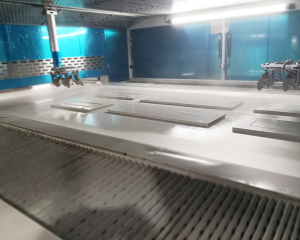针对立体、异形、带凹槽的工件进行连续喷涂,四个侧边及一个上表面同时上色,漆面均匀平整,色泽饱满,在批量生产过程中始终保持稳定的出品。