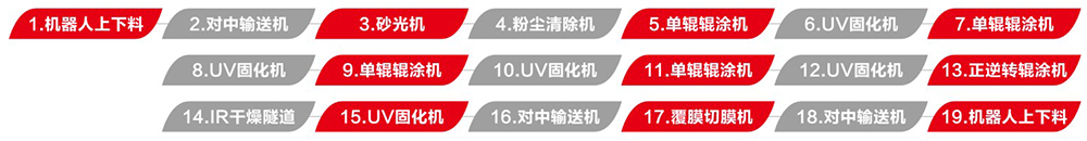 实色UV板辊涂,兼容医疗板和抗菌板的产品种类,采用五面辊涂的工艺实现薄涂多道的的方式,避免深色漆面干不透的现象。配置智控系统,实现一键快速换色的功能。