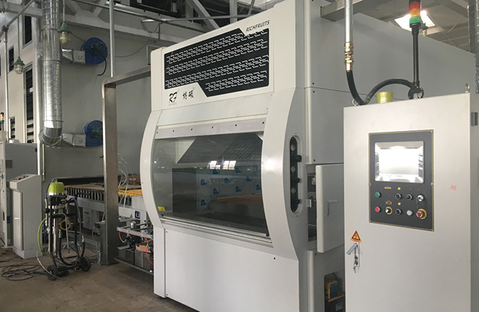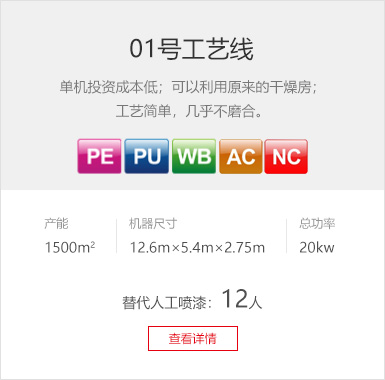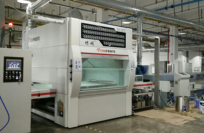 工艺要求 无溶剂UV底漆、水性面漆 产品种类 全屋定制、橱柜、木门、线条 产线数量 2条 设备特色 面容积清洗皮带系统,年节约清洗剂30万。 生产产能 UV底漆喷涂线:1800m²/8h (生产员3人/线)