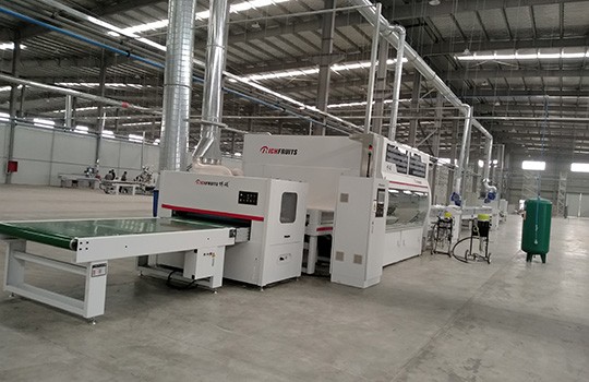 工艺要求 UV底漆、水性面漆 产品种类 实木复合门、门套、门板 产线数量 6条 设备特色 自动喷漆、砂光、喷色、修色和面漆,不下线连续生产。 生产产能 800套门板/天 废气处理 干式过漉+催化燃烧处理系统 -