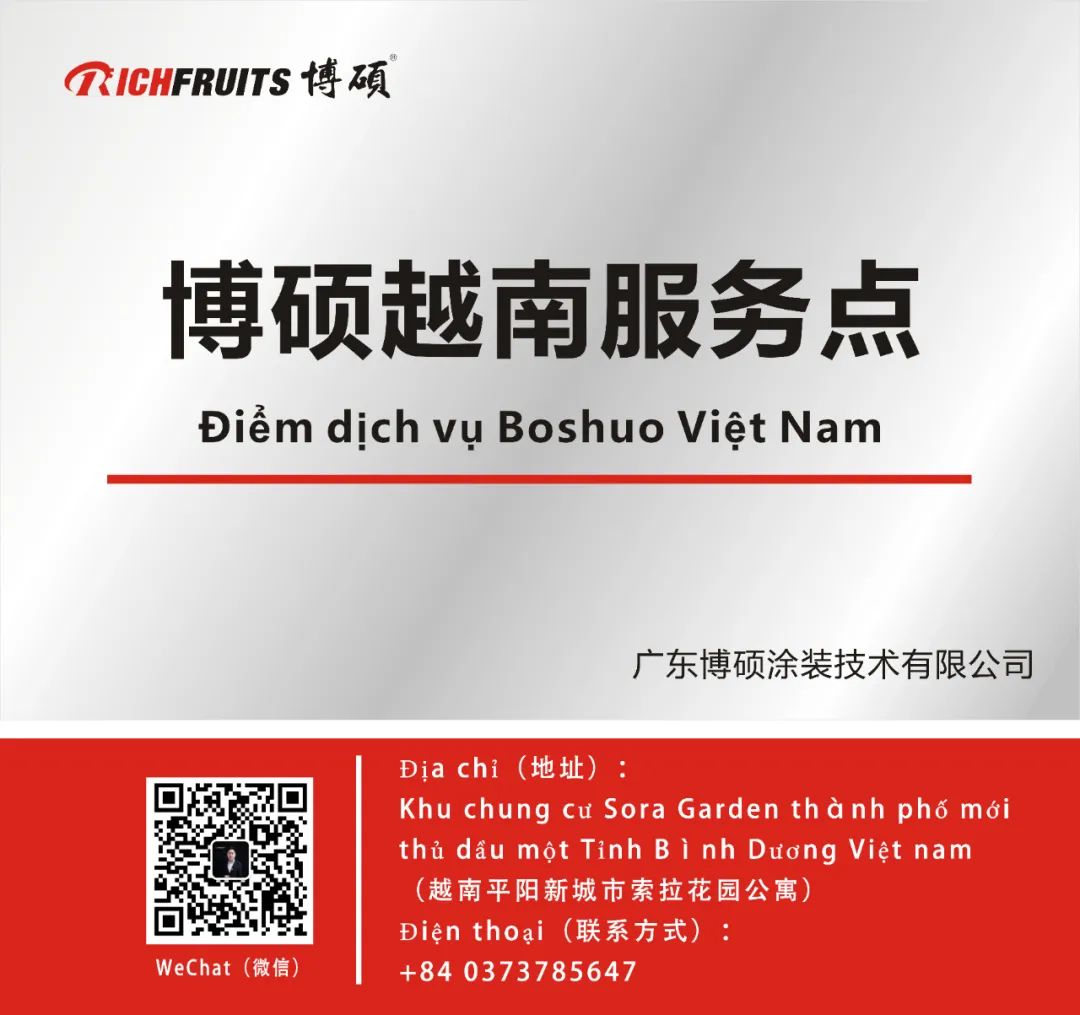 Boshuo đã sử dụng "giải pháp tích hợp sơn" được tích lũy trong gần 20 năm để cung cấp cho các doanh nghiệp các giải pháp toàn diện cho các doanh nghiệp trang trí nội thất gia đình từ đánh giá dây chuyền sản xuất trên, kiểm tra thực địa, bố trí nhà máy, vận hành quy trình, ứng dụng thực địa, đào tạo trực tuyến, dịch vụ hậu mãi, v.v… Cung cấp các dịch vụ tích hợp cho một loạt các vấn đề gặp phải trong dây chuyền sơn.