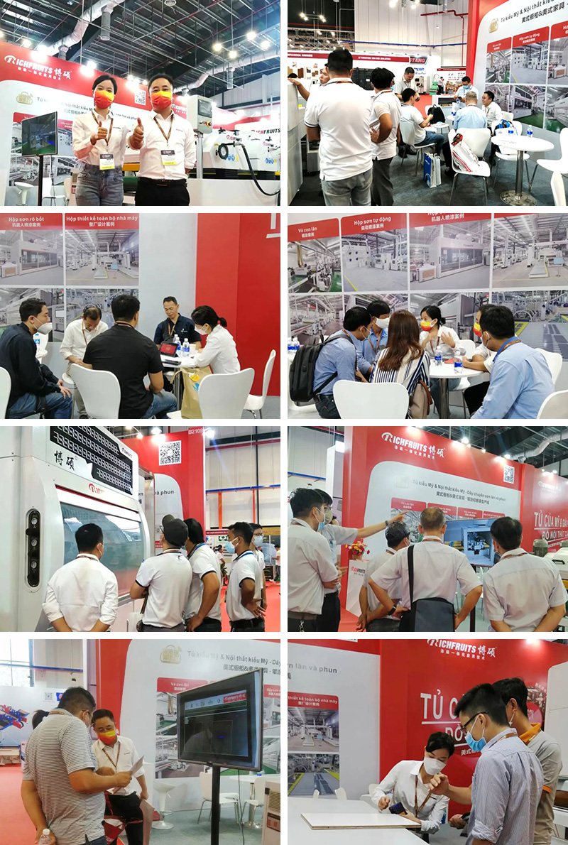 Nhiều nhà sản xuất đồ nội thất Việt Nam đã đến triển lãm của Boshuo để tìm hiểu chi tiết về "Tủ kiểu Mỹ & giải pháp sơn đồ gỗ kiểu Mỹ".