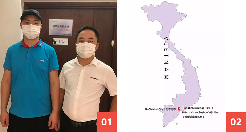 Để giải quyết sự xa xôi của vùng miền, rào cản ngôn ngữ, yêu cầu về kỹ năng sản xuất lành nghề và dịch vụ sau bán hàng kịp thời, Boshuo đã thành lập “Điểm dịch vụ Boshuo Việt Nam” tại Việt Nam.