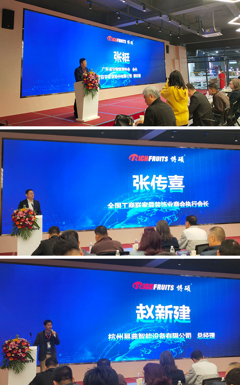 同时,广东省定制家居协会会长索菲亚副总裁张挺、全国工商联家具装饰商会执行会长张传喜、杭州易典智能设备总经理赵新建都为WB.COM万搏涂装一体化智能体验馆点赞!尤其索菲亚副总裁张挺张总高度赞扬了WB.COM万搏的智能涂装系统,现国内甚至是全世界最先进的智能涂装系统落地于兰考索菲亚工厂。
