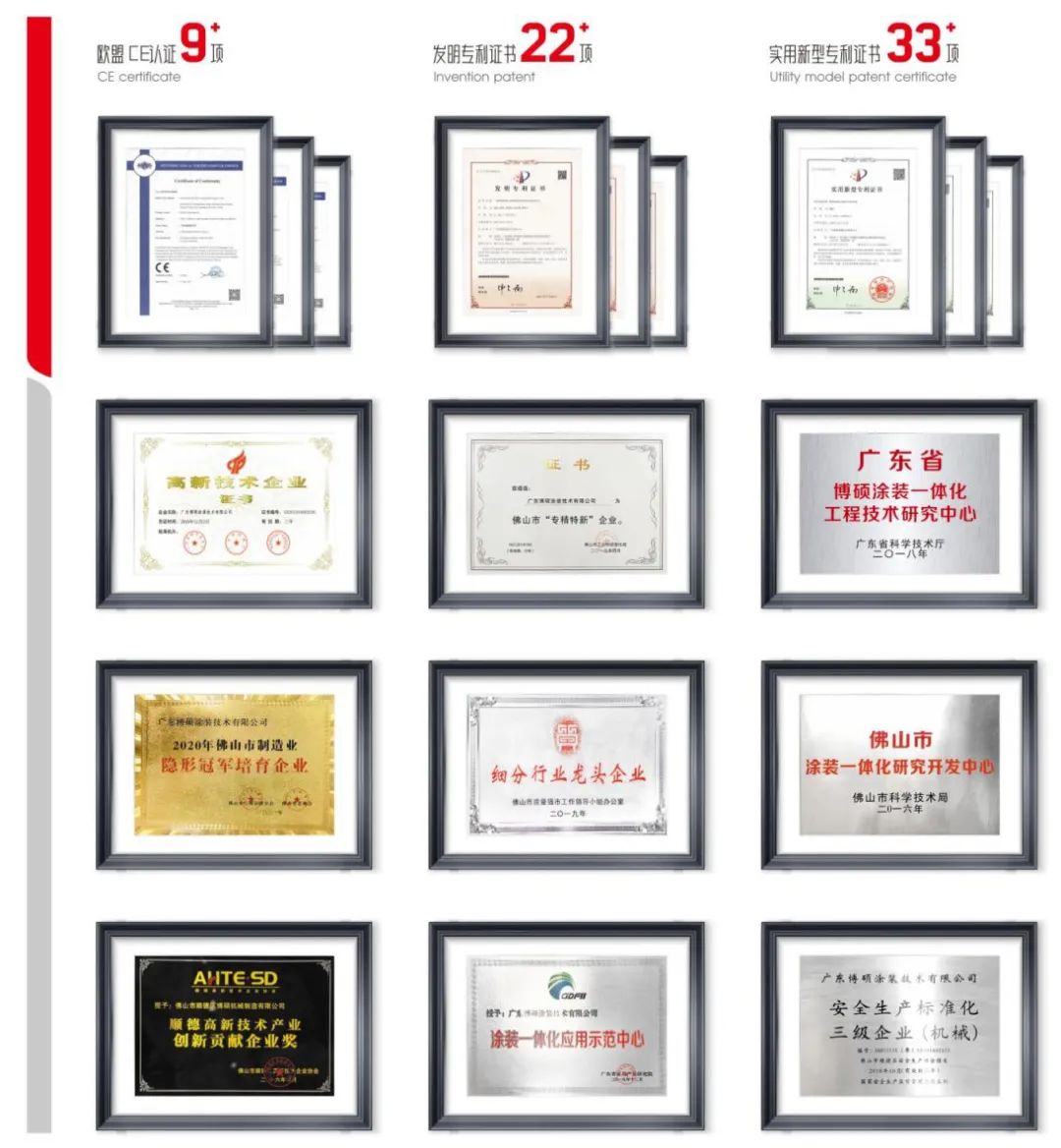 公司在客户方案的设计方面拥有业界顶级的专家,在研究开发上运用德国、意大利先进的技术平台,研发制造出满足木制品和绿色建材行业需求的具有自主知识产权的自动化涂装生产线,并提供专业的一体化的整体解决方案、技术支持和售后服务。WB.COM万搏公司已通过SO9001:2015认证、CE认证,是国家高新技术企业,广东省专、精、特、新,是喷漆机行业标准起草者。