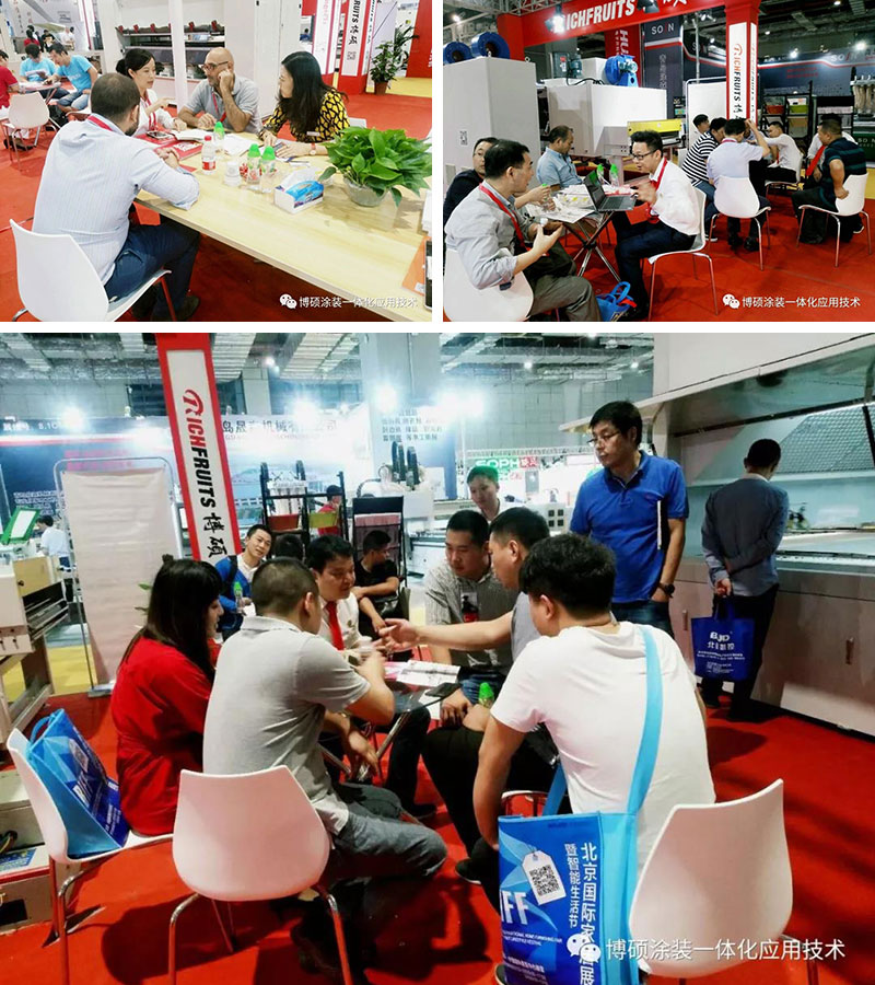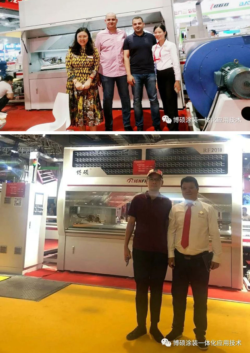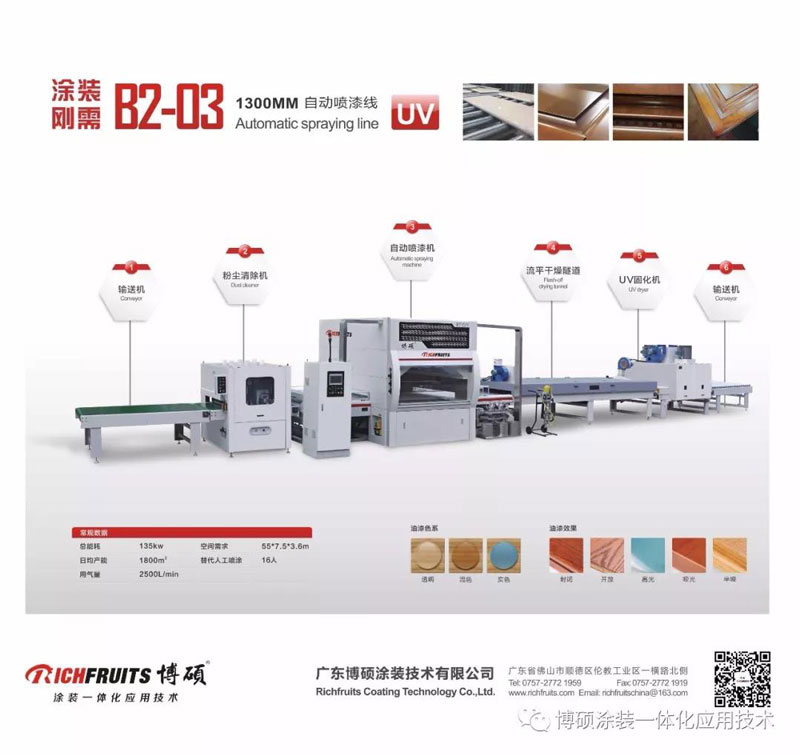 本次展会WB.COM万搏携涂装刚需:B2-03亮相展位,它具有高效、节能、环保的特点,采用UV底+水性面或UV底+UV面的自动化喷涂工艺,达到环保的效果;一条线的管理只需3人,代替16名操作工人;油漆回收利用率达80%—85%,是传统手工喷涂的两倍;适用于橱柜、木门、实木、整木等家居领域,日均产能高达1800平方米。