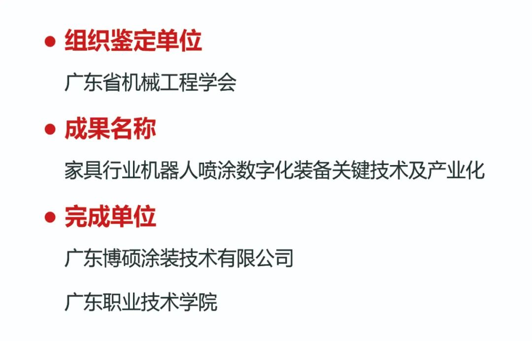 2021年11月19日,由广东省机械工程学会组织并主持,在佛山市顺德区对WB.COM万搏等单位完成的“家具行业机器人喷涂数字化装备关键技术及产业化”项目进行科技成果鉴定。