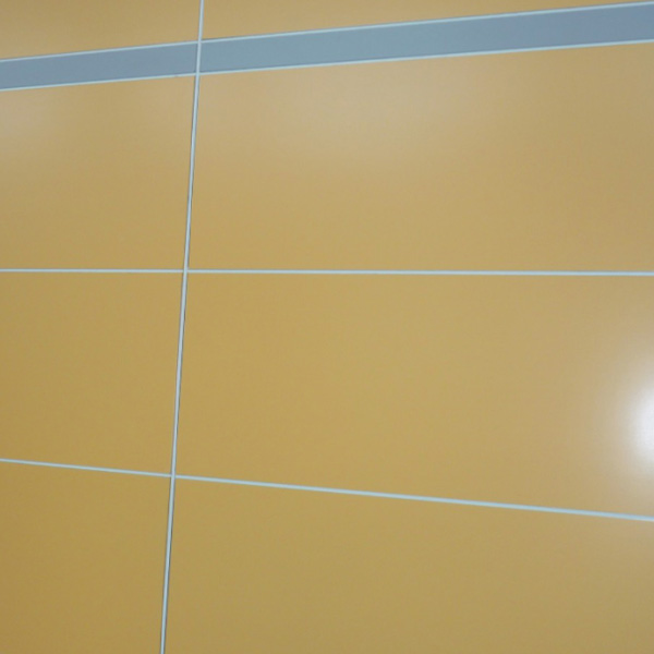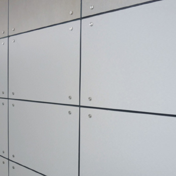 以中高密度纤维水性板/硅酸钙板为基材,通过多层UV底漆辊涂和砂光,以及氟碳中涂和面漆辊涂,达到实色或银粉氟碳漆的饰面效果,具有耐候性、耐热性、耐低温性、耐化学药品性,并且具有良好的自洁性能。