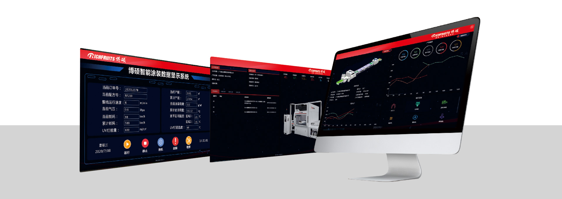 集控台操作界面能显示本生产线各UV固化设备各光源的能量消耗模拟值,并根据模拟值协调。