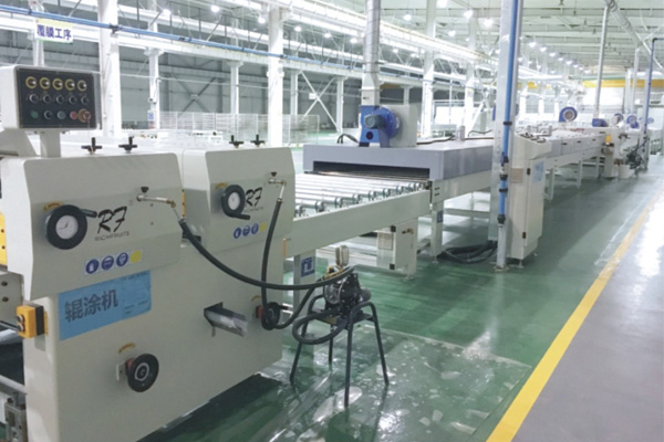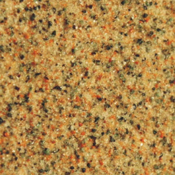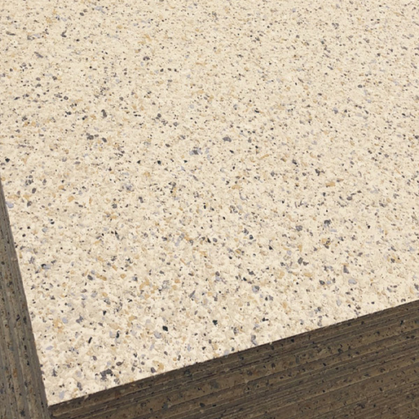 以中高密度纤维水性板/硅酸板为基材,通过砂光和多层水性漆辊涂,以及真石漆/水包砂喷涂,达到仿花岗岩的饰面效果,最后喷涂氟碳罩面,具有良好的自洁性能。真石漆/水包砂喷涂立体浮雕质感面的效果,成本较低,并且具有良好的高低温效果,非常适用于中低端墙面的装饰要求。